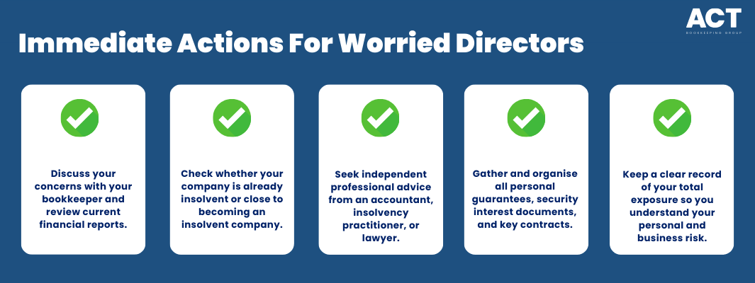 At ACT Bookkeeping, our team helps business owners across the ACT keep their books accurate, highlight early warning signs, and prepare for discussions with insolvency practitioners and legal advisers when needed. If you are unsure whether your company is heading toward insolvency, worried about unpaid wages or other debts, or simply want a better handle on your company’s financial affairs, we are here to help. Reach out to our team for friendly, professional advice that supports you in protecting your business, your future, and your peace of mind.