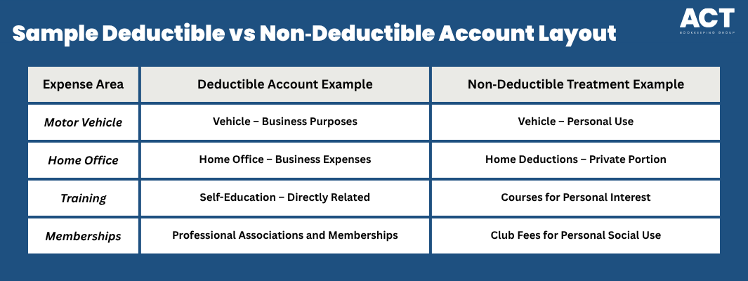 A well‑planned chart of accounts is the backbone of using cloud bookkeeping for tax deductions. You can set up specific accounts for tax deductible expenses, such as home office expenses, travel expenses, self-education, and professional memberships. You can also create other accounts for non‑deductible or personal expenses, so they never accidentally reduce your taxable income.
