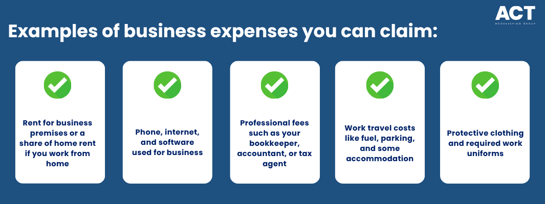 Other deductible expenses can include work uniforms with a logo, essential tools, software subscriptions, and eligible travel expenses related to work travel. If you operate from home, you may be able to claim the business portion of running expenses such as electricity and internet.